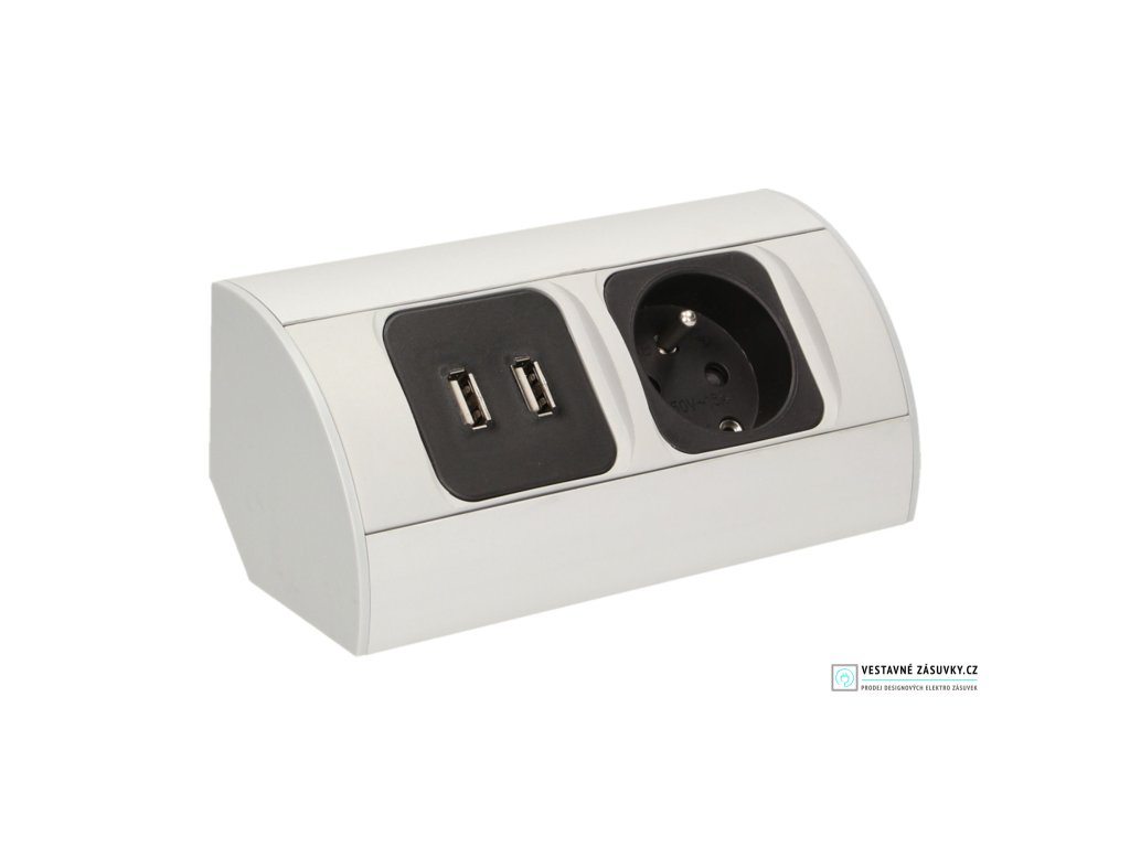 Rohová elektrická zásuvka 1x230V+2xUSB-A.