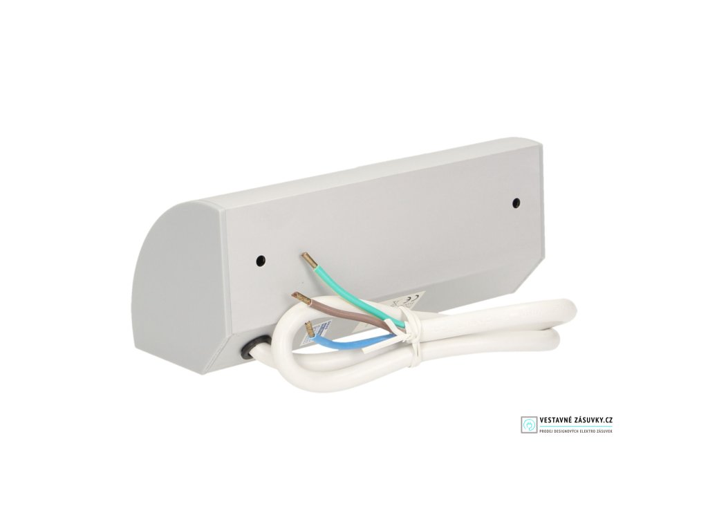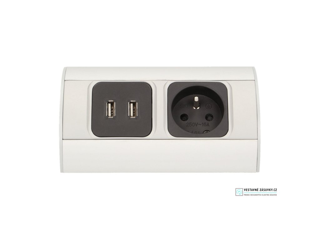 Zásuvka je vybavena 1x zásuvkou 230V+2xUSB-A. Zásuvková lišta je již osazena 0,5 m napájecím kabelem pro připojení do síťové zásuvky.