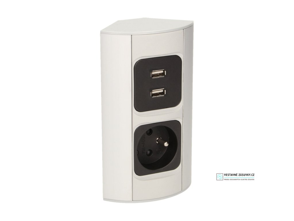 Rohová elektrická zásuvka 1x230V+2xUSB-A.