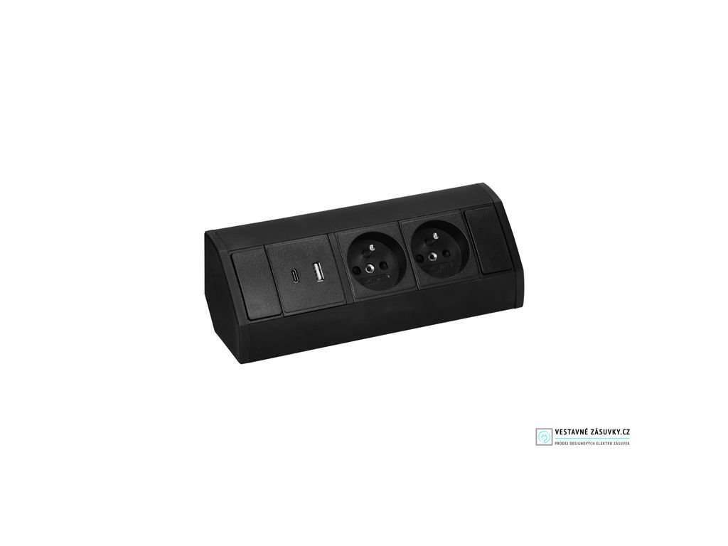 Rohová elektrická zásuvka 2x230V+1xUSB-A+1xUSB-C.