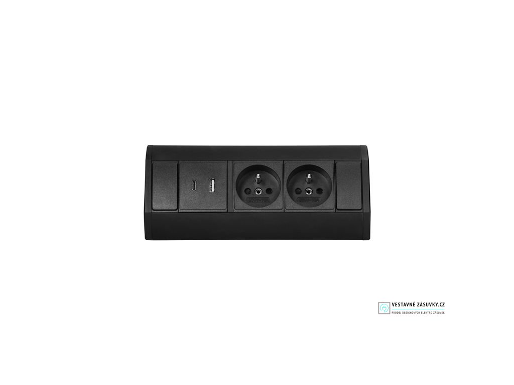 Rohová elektrická zásuvka 2x230V+1xUSB-A+1xUSB-C.