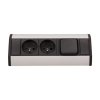 Rohová elektrická zásuvka 2x230V černo-stříbrná s kabelem 0,6m + vypínač