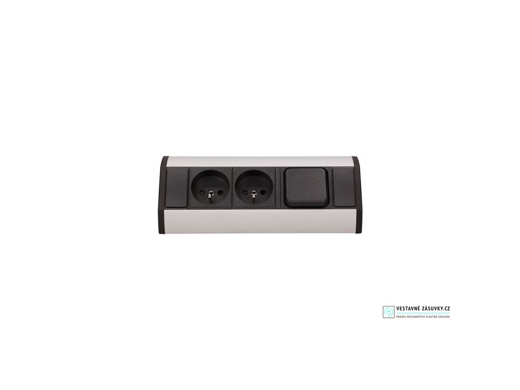 Zásuvka je vybavena 2x zásuvkou 230V a vypínačem. Zásuvková lišta je již osazena 0,6 m napájecím kabelem pro připojení do síťové zásuvky.