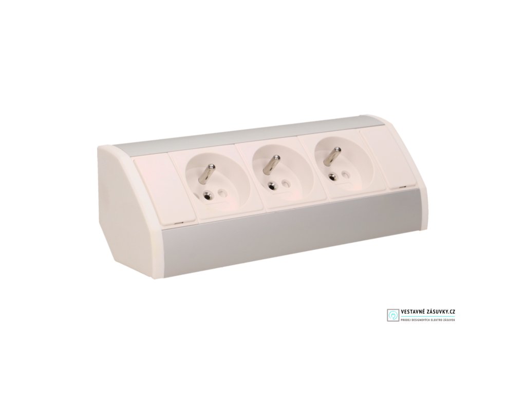 Rohová elektrická zásuvka 3x230V bílo-stříbrná s kabelem 0,6m