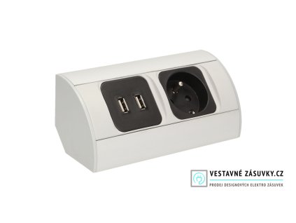 Výklopná elektrická zásuvka 2x230V+1xUSB-A + 1x USB-C, vestavná grafit, oblé hrany s kabelem 1,5m