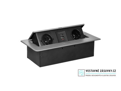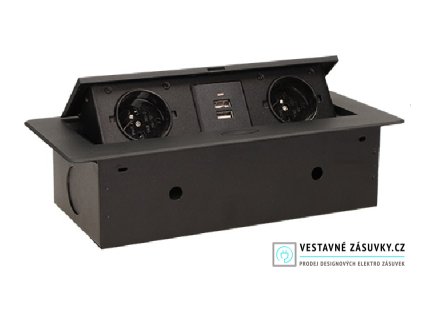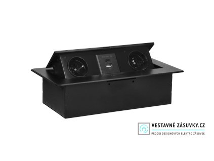 Výklopná vestavná zásuvka černá - oblé hrany, 2x zásuvka 2x230V (2x16A) + 2x USB (USB-A a USB-C) 2x5V DC/2,1A + kabel 1,5m S připojeným...