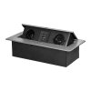 Zásuvka s moderním a ergonomickým designem pro instalaci do pracovního stolu nebo nábytku (např. obývací stěna, kuchyňský ostrůvek apod.). Otevření pomocí zmáčknutí tlačítka a zavření ručním zaklopením.