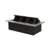 Zásuvka s moderním a ergonomickým designem pro instalaci do pracovního stolu nebo nábytku (např. obývací stěna, kuchyňský ostrůvek apod.).